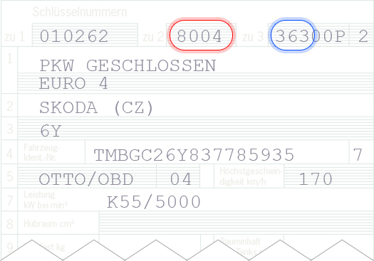 Diese findest du in Deinem Fahrzeugschein bzw. deiner Zulassungsbescheinigung Teil I.